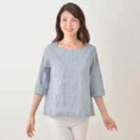 女性の体型を美しく若々しく見せる立体的なデザインで、着心地の良さにもこだわったプルオーバーです。襟元はデコルテが程よく見えることで、首まわりをすっきりと演出。