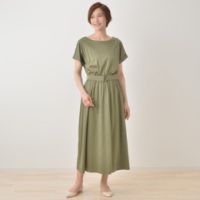 繊維中に油脂分が含まれているエニワイズ加工で、しっとりなめらかに仕上げたワンピースです。ソフトな風合いはもちろん、ラクラクでおしゃれに着ていただけるデザイン。