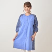 動きやすいラグランスリーブのワンピースです。前身頃は無地を、後ろ身頃はギンガムチェックを使用した2トーンデザイン。
