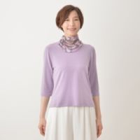 シルク100%のネックカバーが付いた、テンセル混のソフトな風合いと光沢感が上品なプルオーバーです。ネックカバーが首元を華やかにしてくれるので、お出かけにもおすすめ。