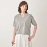 女性の体型を美しく若々しく見せる立体的なデザイン。着心地の良さにもこだわったプルオーバーです。さらりとした肌触りの、綿100%の素材を使用。