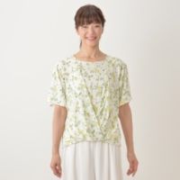 女性らしく上品な、フラワープリントのプルオーバー。シャリ感のある涼しげな素材で、サラっと着用できます。