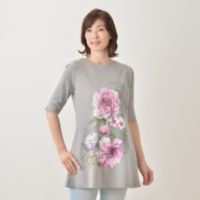 美しいお花の柄が目を引くチュニックです。シルクスクリーンのように一色ずつ丁寧に色を重ね、きれいなグラデーションに。