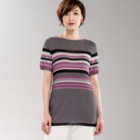 SUPERLADY ランダムボーダー半袖ニットチュニック