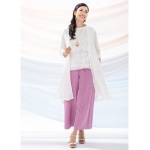 適度なゆとりで細見えしてくれる、ワイドパンツです。肌触りの良い生地を使用。ウエストは、前脇から後ろ全体にゴムを入れてギャザーを寄せることで、ウエストが安定しやすい設定に。