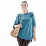 UVカット率96%以上の機能が付いた、ニットプルオーバーです。シンプルながらもボートネックの開きにこだわり、デザインは上品に。