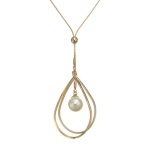 スライドパーツでアレンジが楽しめるネックレスです。大きさの違うドロップ型のメタルパーツとコットンパール風パーツを、スライドパーツによって動かせるようにし、配置を変えることができるようにしました。