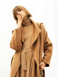 【着まわし力抜群のタートルネックニット】【Design/Styling】身体にしなやかにフィットするタートルリブニット。 すっきりとしたシルエットのタートルニットは一枚ではもちろん、ベストやワンピースなどのレイヤードも使いやすいアイテム。カジュアルすぎないルックスが、デイリーからオフィスシーンまで秋冬シーズンの毎日を彩ります 。同素材のプリーツニットスカート(FWNS195051)と着用すれば、ワンピースのようにも楽しめます。 【Fabric】高級糸ヴィエラヤーンのウール100%を使用し上品に仕…