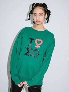 【デザイン】・X-girl定番シルエットの裏毛素材のクルーネックスウェット。・NEW YORKのお土産風の『アイラブXGIRLロゴ』に、女の子マーク&ハートを組み合わせたロゴがポイント。