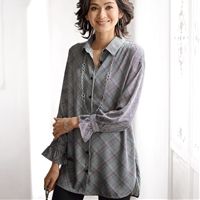 ゆったりシルエットのロング丈シャツは、身頃裏側にフリースを付けたあったか仕様。袖はフリースなしで、腕まわりはすっきり。
