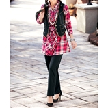 ■品質/(ブラウス)綿100%、(ベスト)綿59%・ポリエステル20%・レーヨン20%・ポリウレタン1%、(パンツ)ポリエステル65%・レーヨン35%●パンツ/ウエスト総ゴム使い※商品によって柄の出方が異なる場合がございます。〔ブラウス:洗濯機ネット使用〕〔ベスト・パンツ:手洗い〕◆長袖OAPU−00192
