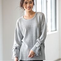 袖のリボンに大人かわいさを授けて手が隠れるくらいの長めの袖にリボンを結んだ、高感度なプルオーバー。ふんわりとした起毛感のある素材や裾のワイドリブ前後差のデザインもポイント。品質/アクリル75%ナイロン20%ポリウレタン5%スリット約26cm※袖口リボ…
