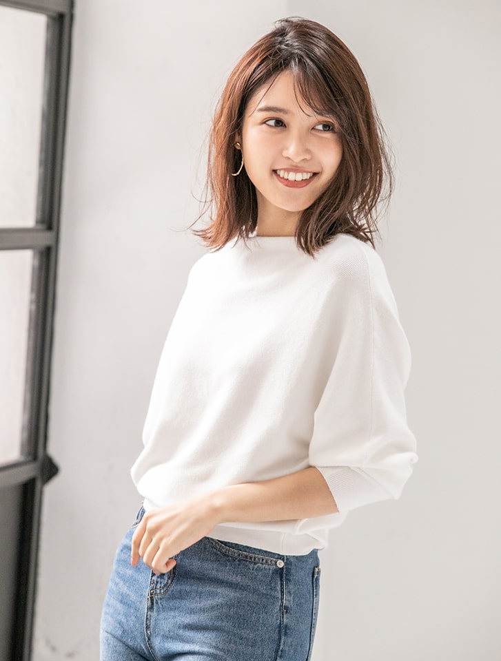ミニマルなルックスと、こなれたディテールでセンスを格上げドロップショルダーのゆるっとしたリラクシングなルーズシルエットで、こなれたムードを醸し出すニットプルオーバー。