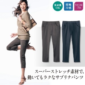 『スリムパンツ・タイトパンツ』を楽天市場で検索する 『スリムパンツ・タイトパンツ』をヤフー!ショッピングで検索する 『スリムパンツ・タイトパンツ』をアマゾンで検索する 『スリムパンツ・タイトパンツ』をベルメゾンネットで検索する 『スリムパンツ・タイトパンツ』をヤフオク!で検索する 触れるとひんやりと感じる接触冷感性のある生地を採用した、快適なはき心地のサブリナパンツ。前に切替えを配して脚ほっそり効果をアップ。ウエストはゴムに見えないカーブゴムベルトでもたつかず、フロントには腰まわりが見えても気にならないよう前開き風の飾りステッチを施しました。ヒップは美尻に見せる飾り片玉縁ポケット付き。洗濯機で洗えるのも嬉しいポイントです。※モニター結果:スタイルノート2014年夏号より