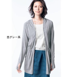 『ジップアップ』を楽天市場で検索する 『ジップアップ』をヤフー!ショッピングで検索する 『ジップアップ』をアマゾンで検索する 『ジップアップ』をベルメゾンネットで検索する 『ジップアップ』をヤフオク!で検索する 表面はシルク素材、裏面にUVケア、接触冷感機能素材「ミリオンアイス(R)」を使っています。ヒップまでカバーできるロング丈のニットパーカは、ウエスト内側の絞れる共ひもやダブルジップでシルエットや着こなし方のアレンジが可能。首や顔まわりをすっぽりカバーする大きめのフード、手の甲まで覆える指穴付きの袖などUVケア対策も万全です。「UV遮へい率」ブルー系:94.5%、ピンク系:92.5%、ブラック系:96.1%、杢グレー系:86.2%