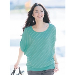 流行ディテールで素敵にさりげなく体型カバー。上半身をまとめて隠してくれるドルマンは体型カバーの救世主。ラメ糸混の爽やかな色とバイアスボーダーでお洒落度もアップ。袖はロールアップできます。