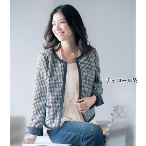 『ノーカラー・スタンドカラージャケット』を楽天市場で検索する 『ノーカラー・スタンドカラージャケット』をヤフー!ショッピングで検索する 『ノーカラー・スタンドカラージャケット』をアマゾンで検索する 『ノーカラー・スタンドカラージャケット』をベルメゾンネットで検索する 『ノーカラー・スタンドカラージャケット』をヤフオク!で検索する ぱっと見はツイードに見えるけれど、実は凹凸のあるジャカード素材にツイード柄をプリントしたという斬新な技を使っているので、意外なほど着心地は軽いんです。表地はストレッチ性があり、裏地にも余裕を持たせて、動きやすさにもこだわりました。配色のシャンブレーパイピングがおしゃれなアクセント。涼やかに季節の先取りもできるから、特におすすめです。大きいサイズはコチラ ≫≫