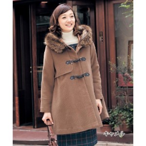 ふっくらとしたウール調素材で着心地は暖か。ボリュームのあるAラインも、フェイクファーやビット使いのアクセントですっきり見えます。