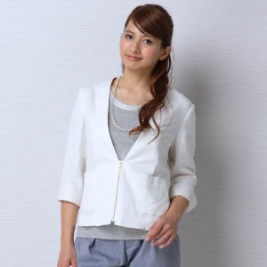 『ノーカラー・スタンドカラージャケット』を楽天市場で検索する 『ノーカラー・スタンドカラージャケット』をヤフー!ショッピングで検索する 『ノーカラー・スタンドカラージャケット』をアマゾンで検索する 『ノーカラー・スタンドカラージャケット』をベルメゾンネットで検索する 『ノーカラー・スタンドカラージャケット』をヤフオク!で検索する 麻混の清涼感漂う風合いで、爽やかな着心地が楽しめる7分袖ジャケット。すっきり開いた衿元のデザイン&ファスナー使いで、スタイリッシュな着こなしが叶います。スリットを入れた袖口は、折り返すとストライプ柄が覗くデザイン。通勤シーンにもおすすめの1着です。