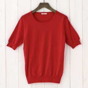 『セーター』を楽天市場で検索する 『セーター』をヤフー!ショッピングで検索する 『セーター』をアマゾンで検索する 『セーター』をベルメゾンネットで検索する 『セーター』をヤフオク!で検索する 着回し力抜群で何枚でも欲しくなる、ベーシックデザインのニット。定番カラーの豊富なバリエーションも魅力です。腕をすっきりと見せる5分袖には小さなボタンがあしらわれ、さり気なくこだわりのアクセントに。上質感のある綿100%素材の、ソフトでなめらかな肌触りもポイントです。