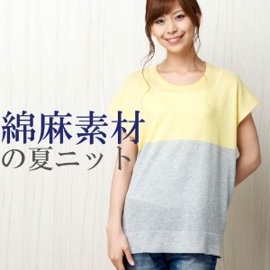 上品綿麻ニットの涼しげ配色ニット(BLUCIELO)