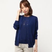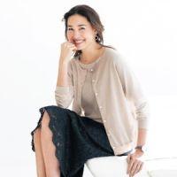柔らかな風合いのニット素材を使用した、カーディガンとプルオーバーのアンサンブル。襟ぐりのビジューが、顔まわりに程よく華やぎを添えてくれます。