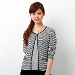 『ノーカラー・スタンドカラージャケット』を楽天市場で検索する 『ノーカラー・スタンドカラージャケット』をヤフー!ショッピングで検索する 『ノーカラー・スタンドカラージャケット』をアマゾンで検索する 『ノーカラー・スタンドカラージャケット』をベルメゾンネットで検索する 『ノーカラー・スタンドカラージャケット』をヤフオク!で検索する ボーダーの編み地が大人の魅力を引き立てるジャケット。衿ぐりから前立て、ポケット口にあしらったラメ使いのブレードが、華やかさとクラシカルな印象を添えています。サラリとした肌触りの薄手素材で、羽織りやすいのもポイント。程よいきちんと感のあるデザインで、幅広いシーンで活躍します。(モデル着用はMサイズ)
