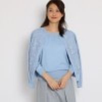 刺しゅうチュールを前身頃に重ねた上品フェミニンなニットカーデのアンサンブル。直接刺しゅうするのではなく、チュールを重ねることでふわっと優しいムードに。