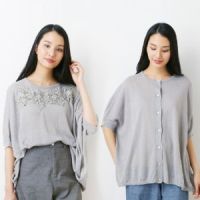 リネンコットンの気持ちよいシャリ感を素肌で。襟元の表情が美しいのは、綿麻の素材だから。肌なじみのいい天竺編みで仕上げました。