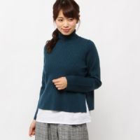 リブ編みですっきりと仕上げた、タートルネックのニット。裾サイドに入れたスリットが、おしゃれなアクセントになっています。異素材切替えのインナーとセットなので、バランスの良いスタイリングが簡単に楽しめるのがうれしい。デイリーにも通勤にも、大活躍してくれます。