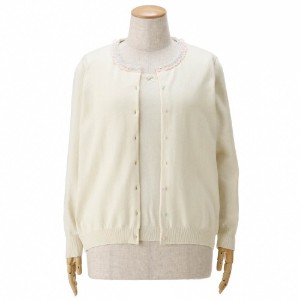 『ニットアンサンブル・ツインニット』を楽天市場で検索する 『ニットアンサンブル・ツインニット』をヤフー!ショッピングで検索する 『ニットアンサンブル・ツインニット』をアマゾンで検索する 『ニットアンサンブル・ツインニット』をベルメゾンネットで検索する 『ニットアンサンブル・ツインニット』をヤフオク!で検索する おめかしスタイルにぴったりの華やかなアンサンブル。カーディガンは、ネックラインにパール風ビーズとレースをバランスよくトッピング。ふんわりとした袖山も、女性らしいアクセントになっています。ちょこんとリボンがあしらわれたプルオーバーを合わせれば、ひと際スイートな装いに。それぞれ単品でも活躍します。(着用商品は15号サイズ)