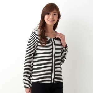 『ノーカラー・スタンドカラージャケット』を楽天市場で検索する 『ノーカラー・スタンドカラージャケット』をヤフー!ショッピングで検索する 『ノーカラー・スタンドカラージャケット』をアマゾンで検索する 『ノーカラー・スタンドカラージャケット』をベルメゾンネットで検索する 『ノーカラー・スタンドカラージャケット』をヤフオク!で検索する ほんのりラメの効いたボーダー柄がスタイリッシュなノーカラージャケット。フロントのファスナー&テープがアクセントになった、おしゃれなデザインが魅力です。柔らかなカットソー素材で着心地の良さも◎。シンプルなシルエットで合わせやすく、オンオフ問わず活躍します。※ご購入可能な色・サイズ・タイプは、”在庫・価格を一覧でチェックする”でご確認ください。