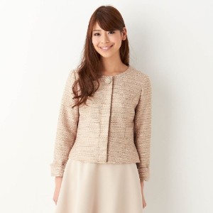 ニュアンスのあるミックス素材にラメを効かせた、華やかな雰囲気が魅力のジャケット。飾りボタンをあしらったフェイクポケットがきちんと感を演出し、お出かけにもマッチします。