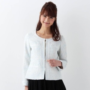 ざっくりとしたツイードの風合いが上品なベーシックなノーカラージャケット。ウエストを軽く絞った、すっきりとしたシルエットです。
