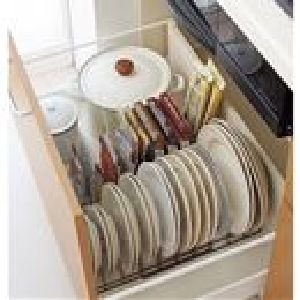 仕切りのワイヤーが4cmピッチ9段階で可動するので、収納物によって設定可能です。引き出しタイプのシンク下の整理整頓に役立ちます。
