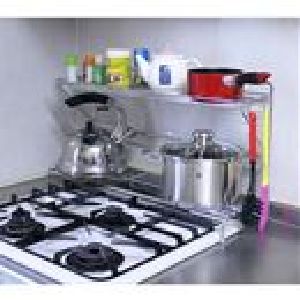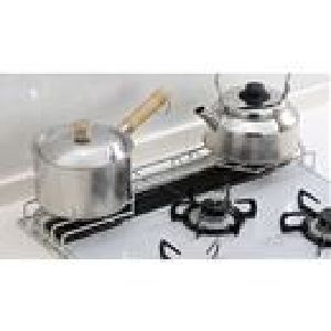 ステンレス製でお手入れ簡単!奥行22センチで、鍋やケトルなどもラクラク置けます。3つ口コンロ対応の凹型形状。