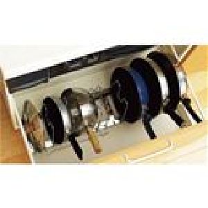 収納部は取っ手部が上向きに置けるホルダー付きで出し入れがしやすいです。 コンロ、キッチンの配置に合わせてラックは左右どちらにも置くことができます。