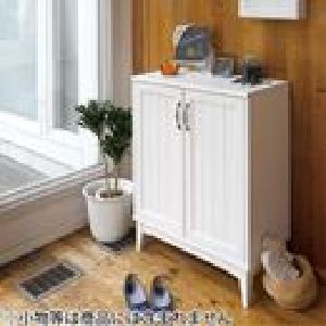 ルーバー扉の薄型天然木シューズラック