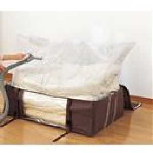 収納ボックスに掃除機で吸引するタイプの圧縮袋が付いて使いやすい♪ベルトを留めて圧縮を強化!中芯入りなので積み重ねもOK。