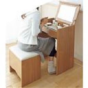 上下の角度が自由に変えられる三面鏡。台座部分は小物置きが付いていてとても便利です。