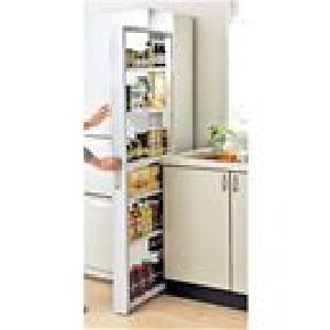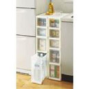 キッチン周りのわずかな空間、例えば、シンクと冷蔵庫の間に出来るちょっとした空間を収納スペースに変えて、調味料やストック食品などかさばる小物を整理できます。