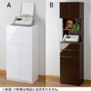 前板がツヤツツヤ光沢仕上げのFAX台。お求めやすいレギュラータイプと、収納力抜群のハイタイプ。FAX収納スペースには配線コード穴付き。