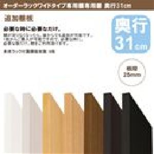 奥行31cmのセミオーダー収納ラック頑丈タイプ専用の追加棚板。耐荷重30kgの棚板仕様。幅が15〜90cmの範囲内から、1cm単位でオーダーできます。