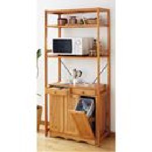 天然木の質感がインテリアになじみます。ラックは10cmピッチで調節できます。ごみ箱の天板は熱いものも置けるタイル付き。