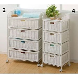 水に強い樹脂製のバスケットラック。さっと拭いてお手入れしやすく、カビも生えにくいので清潔です。また天然材のようなささくれもなく、ラタン調のデザインも魅力。