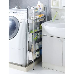 清潔感があり水に強いステンレス棚のサイドラック。ランドリーの洗濯機の横やサニタリーの洗面台の脇など、ちょっとしたすき間におけるスリムタイプで、収納もたっぷりできて便利です。