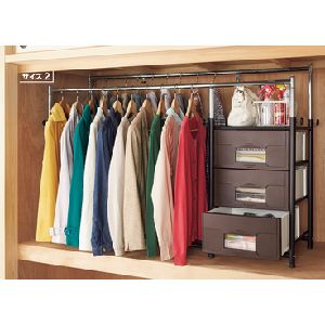バーが前後2列になっており、押入れの深い奥行をムダにせず最大限活用できる。バーの高さと幅は自由に調節可能。