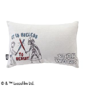 キャンパス地で描かれたルークvsダースベイダーがとてもキュート♪小さめの枕で腰に当てるのにもちょうど良い大きさですカバーは取り外して洗えるので清潔にご使用いただけます