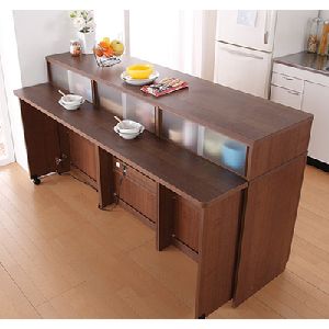 テーブルカウンターで間仕切って楽しむキッチンスタイル。光沢が美しくキズがつきにくいUV塗装。