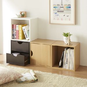 単体でコンパクトに使っても、横に並べてシリーズ家具としても、縦に積んで1つの家具としても、ユニット式で使えるキャビネットシリーズだから使い方は自由自在。サイズ2=ガラス扉は、収納物が透けるガラス扉でスムーズに開閉できるフラップ扉を起用。コード穴が付いた、2段タイプの可動棚でDVDプレーヤー等を置いていただけます。サイズ3=ディスプレイ扉は、雑誌などディスプレイできるタイプもご用意しました。こちらも2段タイプの可動棚になっているので、置くものの高さに合わせて調整いただけます。サイズ4=引き出しは、…